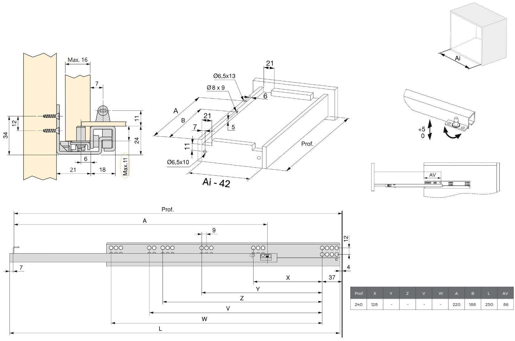 - Disponible en 3 versiones: Soft-Close con extensión completa de cierre automático, Soft-Close con extensión parcial de cierre automático y Extensión parcial de apertura a presión